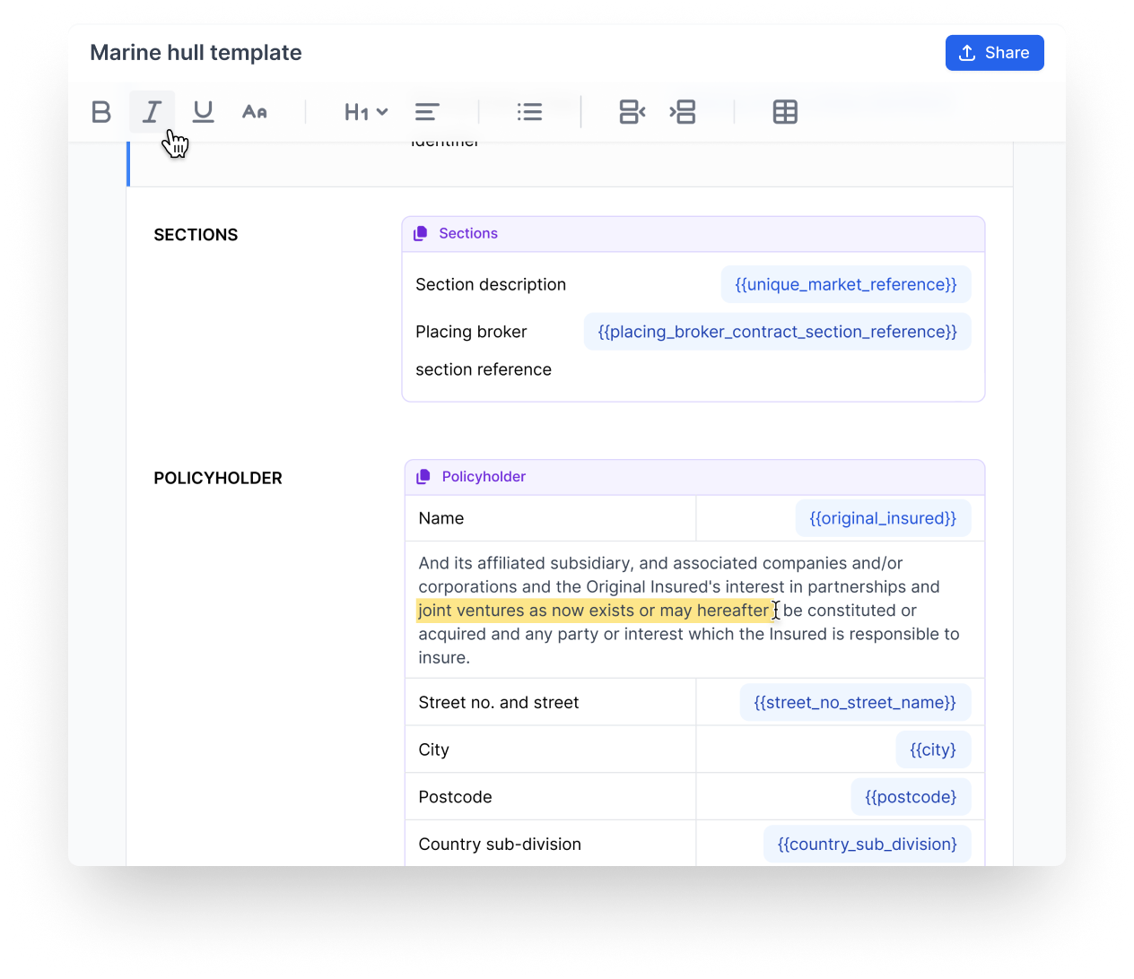 Integrated Contract Builder capabilities: Our proven Contract Builder tool is included in Smart Placement so your brokers can generate data-first, market-compliant contracts to their data model specifications. It is embedded into Placing Platform Limited (PPL) and removes the need to re-key information.