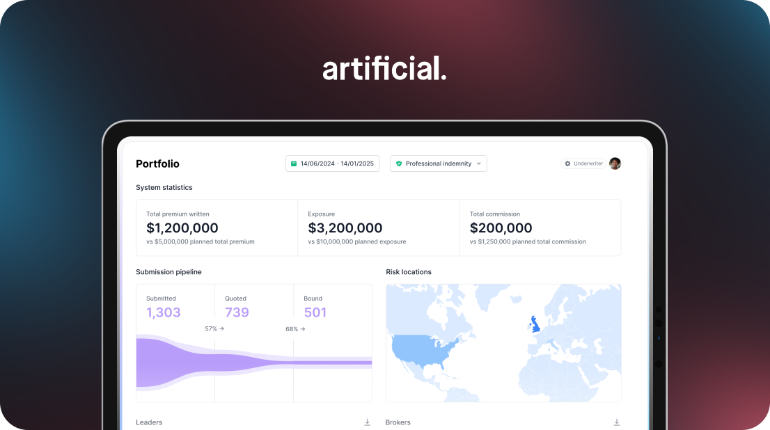 But to achieve real transformation, brokers and underwriters must align around a single source of truth, from quote to bind. At Artificial, our Smart Placement and Smart Underwriting platforms tackle this by providing a seamless flow of information across the risk’s journey.